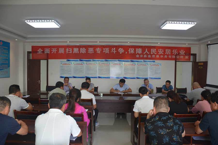 9月4日,金鄉(xiāng)縣金思泉水務(wù)有限公司開展“掃黑除惡、勇當(dāng)先鋒”主題黨日活動。會議由黨委書記蘇文彬主持,全體黨員干部參加。